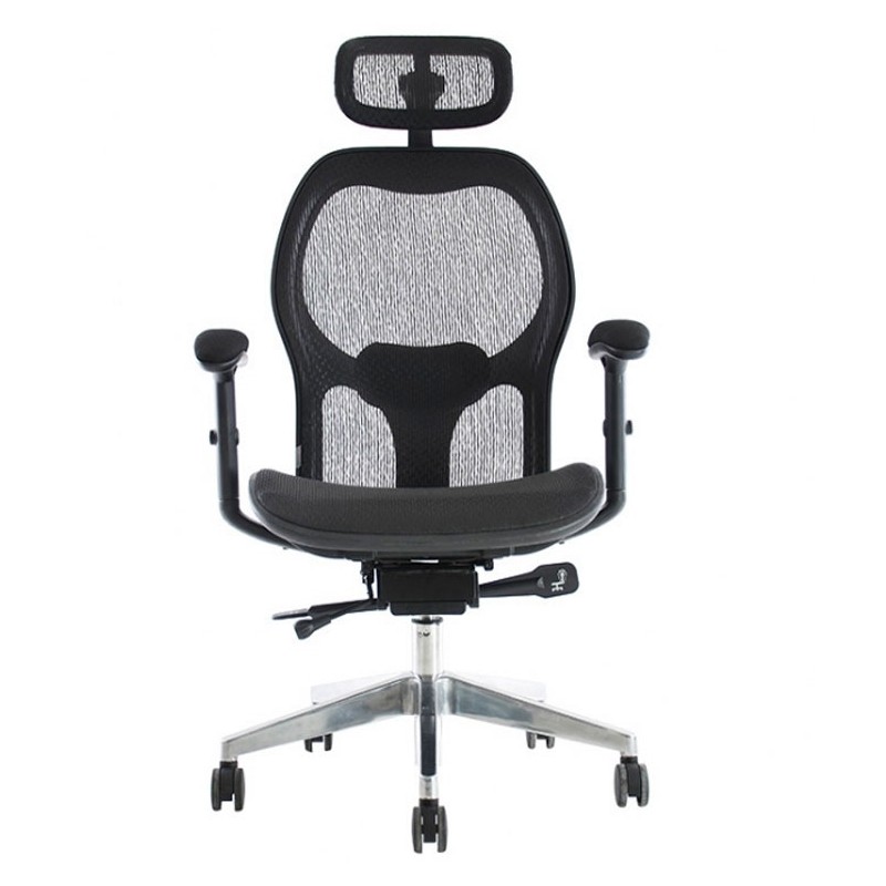 •Tapiz de respaldo en malla flex. •Mecanismo syncro auto regulable con bloqueo en 4 posiciones. •Rodajas de nylon color negro. •Base cromada. •Pistón sistema de elevación rebasado terminado en color negro. •Mecanismo syncro auto regulable con bloqueo en 4 posiciones. •Asiento fabricado en nylon color negro. •Respaldo de nylon color negro, con soporte lumbar ajustable. •Cabecera ajustable tapizada en malla flex. •Brazos ajustables fabricados en nylon color negro con un Pad tapizado en tela acorde al color de la malla. •Tapiz de respaldo en malla flex en color: Negro, Verde, Rojo o Gris. •Tapiz de asiento en malla flex en color: Negro, Verde, Rojo o Gris. •Dimensiones: Alto: 120 cm Fondo: 67 cm Ancho: 70 cm.