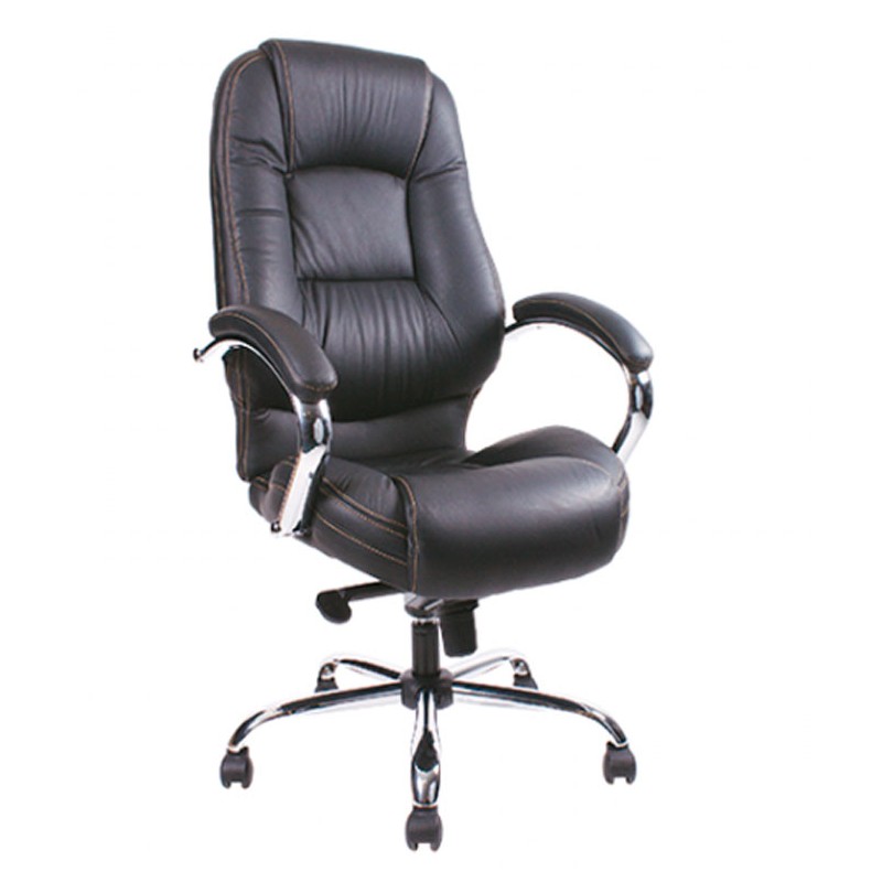 •Tapizado en piel. •Mecanismo de rodilla. •Rodajas de nylon color negro. •Base cromada. •Sistema de elevación neumática, cuenta con un cubre pistón de polipropileno color negro. •Mecanismo de rodilla con 5 posiciones de bloqueo. •Asiento y respaldo concha de madera domada y contrachapeada de 16 mm. •Acojinamiento poliuretano flexible. •Brazos polipropileno color negro. •Dimensiones: Alto: 125 cm. Fondo: 65 cm. Ancho: 64 cm.