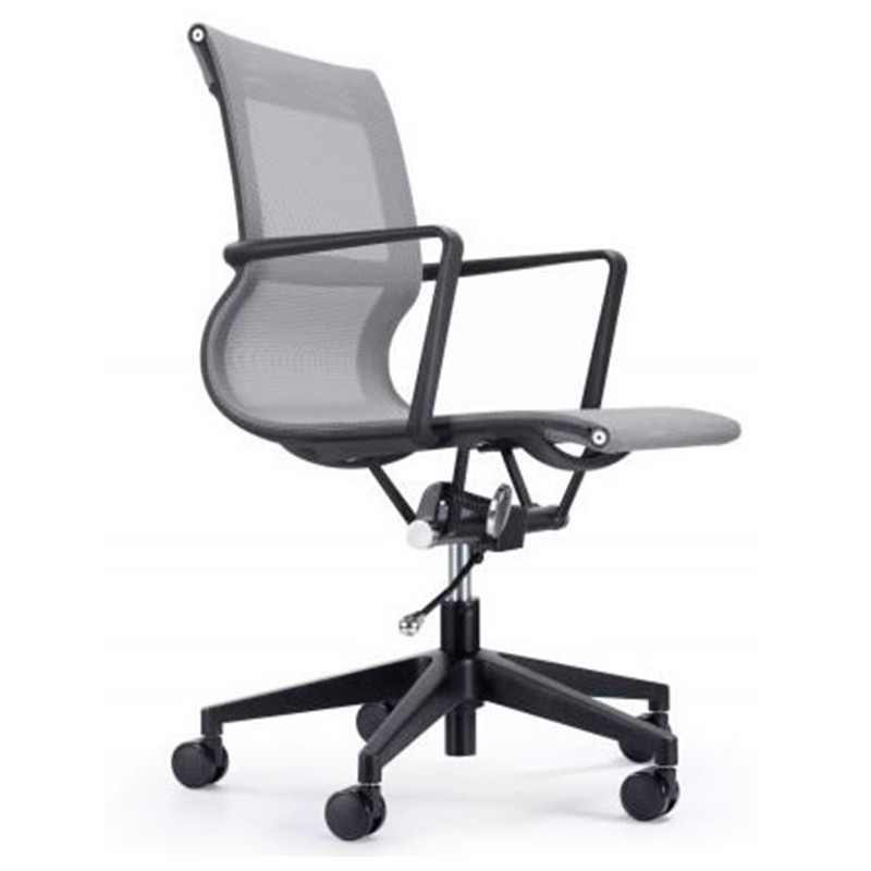 Estructura de polipropileno, tapizado en malla coreana Base de nylon de 27" con rodajas PU Mecanismi con palanca para ajuste de altura y palanca para bloqueo de reclinamiento Brazos de polipropileno fijos al respaldo y al asiento en forma de escuadra