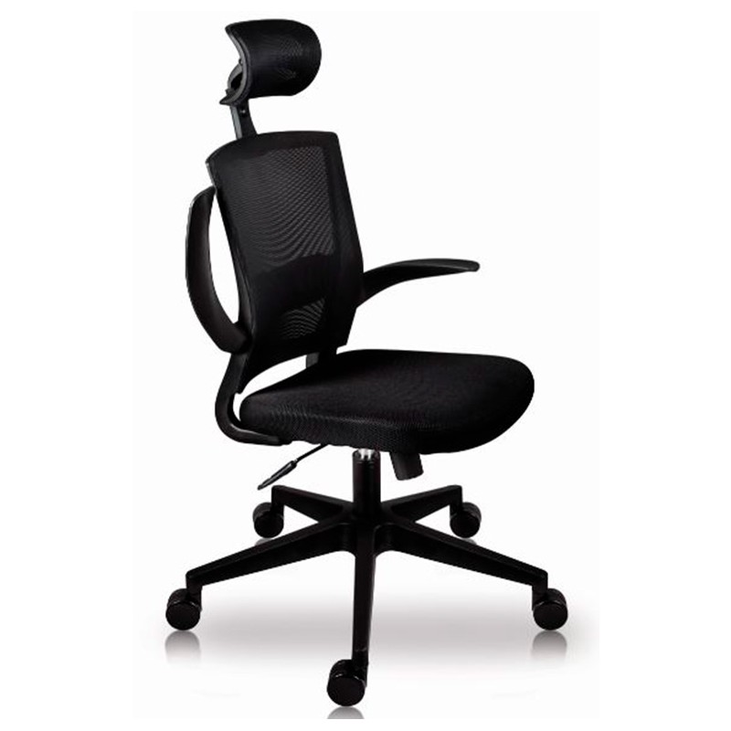 Respaldo con almohadilla, lumbar ajustable, brazos plegable a 90° en polipropileno.