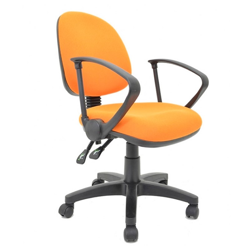 •Tapizado en tela. •Mecanismo de 2 palancas. •Rodajas de nylon color negro. •Base de nylon. •Sistema de elevación neumática con cubre pistón de polipropileno color negro. •Mecanismo multifuncional de 2 palancas. •Asiento fabricado en madera domada y contrachapeada de 16 mm, con tapa de nylon. •Respaldo de polipropileno reforzado con nervaduras para dar mayor resistencia, cuenta con tapa de nylon anti impactos. •Acojinamiento poliuretano inyectado de 53 Kg. De densidad tanto en el asiento como en respaldo. •Dimensiones: Alto: 90 cm Fondo: 60cm Ancho: 66 cm •Brazos ajustables.