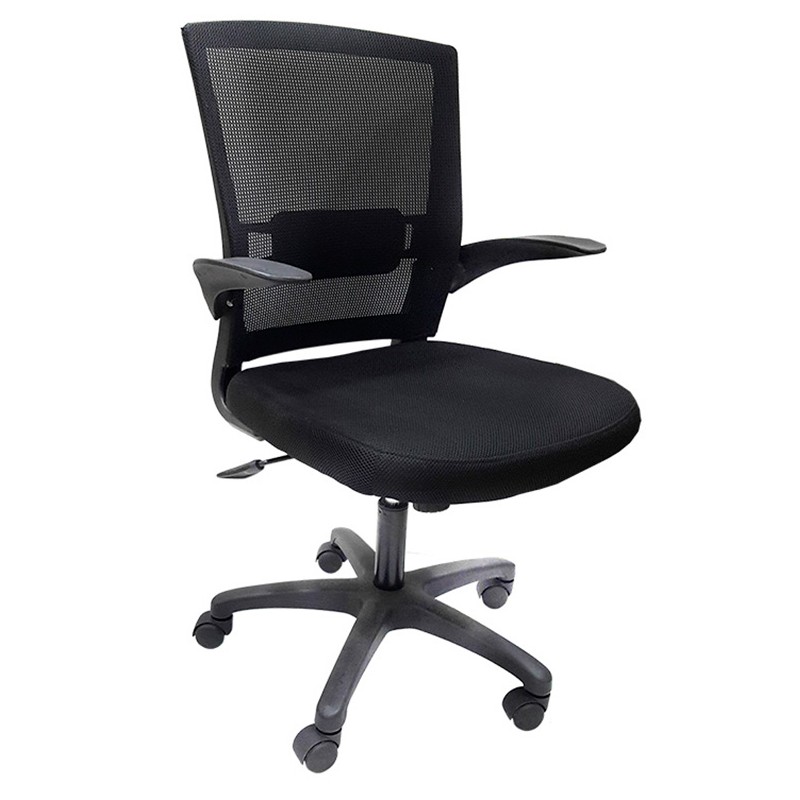Respaldo tapizado en malla con almohadilla lumbar. Asiento de espuma estándar tapizado en tela mesh. Base y rodajas de nylon. Mecanismo ejecutivo con ajuste de altura y bloqueo con reclinamiento. Brazos de polipropileno, con ajuste en posición vertical. Perilla de asiento tensora de reclinamiento.