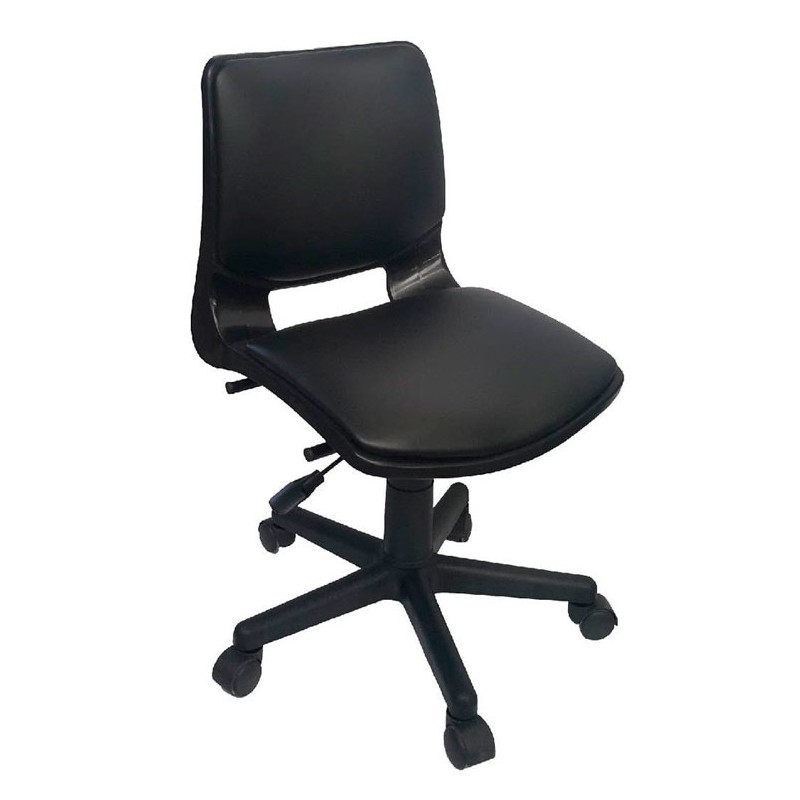 •Asiento y respaldo integrados en una concha color negro. •Mecanismo fijo. •Asiento y respaldo acojinados en hule espuma. •Base de polipropileno de 22".