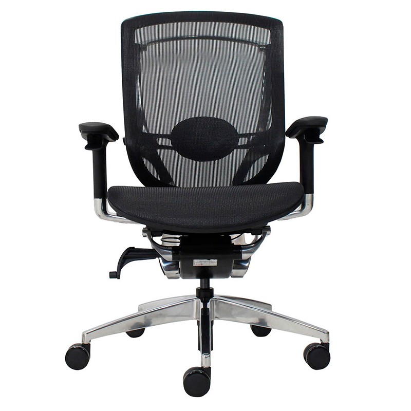 Mecanismo synchro multiposiciones de alta calidad, con slide plate para regular la profundidad del asiento, 3 posiciones de bloqueo, sistema antishock y regulación de tensión. Descansabrazos de aluminio pulido con pad de poliuretano inyectado, con movimiento 2D para su ajuste de altura y ajuste giratorio. Descansabrazos “advance clic”, nueva tecnología que incluye botones en cada brazo para regular la altura y controlar la posición y bloqueo de la inclinación del sillón. Respaldo con soporte lumbar ajustable en altura y profunidad, elegante estructura de aluminio pulido. Base de 5 puntas fabricada en aluminio pulido.