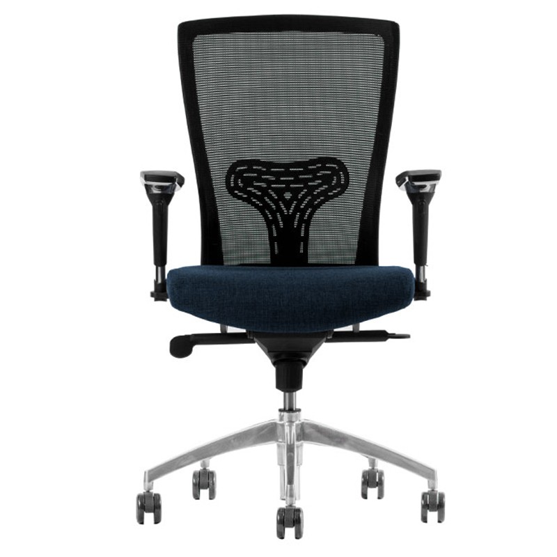 Mecanismo de rodilla multiposiciones con tres posiciones de bloqueo, sistema antishock y regulación de tensión. Descansabrazos de polipropileno color negro con pad de poliuretano inyectado, con movimiento 2d para su ajuste de altura y ajuste giratorio. Acojinamiento en asiento de poliuretano inyectado de 53 kgs/m3. Base de 5 puntas fabricada en aluminio pulido. Respaldo con soporte lumbar tapizado en smarthmesh plus en color negro.